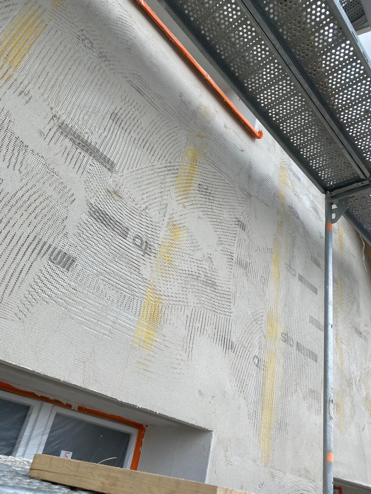 Ein besonderes Highlight dieses Projekts war der Einsatz der traditionellen Kellenwurf-Technik. Diese Methode zählt zu den ältesten und bewährtesten Verfahren im Bereich der Putzarbeiten und verleiht Gebäuden eine zeitlose, handwerkliche Ästhetik. Mit höchster Präzision und Sorgfalt haben wir den 6-8 mm starken Kellenwurf aufgetragen, um eine robuste und optisch ansprechende Oberfläche zu schaffen.